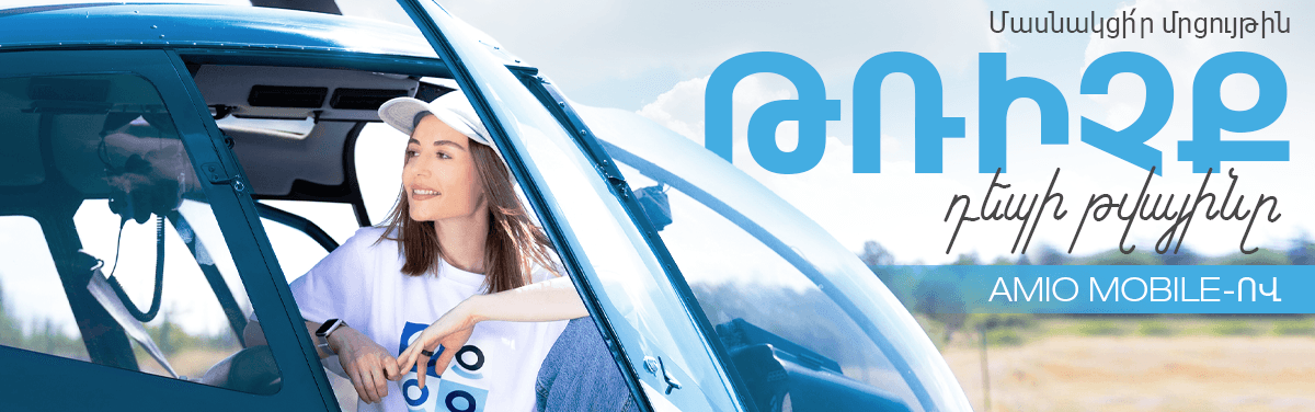 Թռչում ենք դեպի թվայինը, միացի՜ր մեզ։ Կատարի՛ր գործարքներ AMIO Mobile-ով, մասնակցի՛ր մրցույթին և ստացի՛ր Armenian Helicopters-ի հետ ուղղաթիռով թռչելու հնարավորություն դեպի Ազատի ջրամբար և Գառնու տաճար: